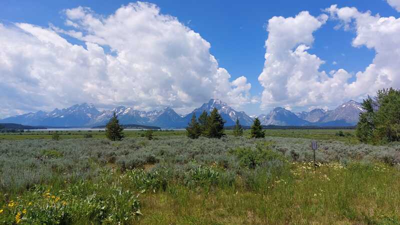 June 28th, Missoula - Hamilton: We left Missoula in the pouring rain south to Hamilton. We spent our off day in Missoula. This city is certainly not what one would expect in Montana. Pride flags all over and pictures of the transgender state representative Zooey Zephyr, lots of Marijuana stores, small coffee places full of students on their notebooks, art galleries, vinyl records stores, surfers on their boards in the river, etc... and all in an otherwise relatively conservative state; no wonder its nickname is Zootown 🤣. Missoula also hosts the headquarters of the Adventure Cycling Association, where our maps and our GPS data were generated. They do a great job promoting cycling throughout the US. We visited their offices on our day off and got ice cream and our picture taken. They also weighed our trailer, which is now officially 74.7 pounds. Missoula also has multiple bike shops. We went to Bicycle Works, got a complete check, a cleaning, new chains, and a new tire in a few hours. Thanks Alex! June 29th-30th, Hamilton - Jackson: It is the last day of June, and we made it to Jackson Montana, population 39. We are really glad, we found a place to sleep and rest. Again, we have been without any kind of electronic communication for a couple of days and camping. There is no or very little grocery shopping or restaurants in this area and so meal planning becomes a real task with the limited space we have for food. However it is a remote but excitingly beautiful area of Montana. It's is known for the Nez Perce war and the flight of the Nez Perce from the US Cavalry over hundreds of miles and a hide and seek between the Nez Perce and the authorities over a period of over 4 months. We crossed the Chief Joseph pass at over 2200 meter, where he had led his people into Big Hole Valley. Today we visited the Big Hole National Battlefield where many Nez Perce and soldiers lost their lives, only a few weeks after the famous Battle at Little Big Horn (300 miles away) and General Custer. Big Hole is not as famous but it was absolutely devastating for the Nez Perce. We have reached 1825 km and 14820 meters ascent! Obviously our personal record for a month. July 1st, Jackson - Dillon: All day, we traveled through an even more remote area than up to now: grassland and sagebrush valleys between snowcapped mountains, without any farms or villages! It was beautiful! As we were getting close to Dillon, a heavy storm caught up with us. The wind gusts would push the trailer off to the side off the street, and riding the bike was not possible anymore. We stopped and sought shelter behind the first building we found until the storm was over. Later, we found out that this very storm had knocked out the power line for half the city! It sent us right back into the last century: The hotel couldn't complete our check-in because the computers, the credit card, the key cards, etc. didn't work. All restaurants in town, traffic lights, and so on didn't either. We had traveled through an area almost untouched by technology (no cell phone), and even in town, we were still in the 19th century. Well, we were back in the 21st century around 8 pm, and everyone, including us, was pretty relieved that things we are used to started working again. July 2nd, Dillon - Virginia City: Today, we traveled through gold mining history and reached Virginia City, where we are staying in a refurbished miners cabin. We stopped at many of the historical panels along the road, either because we think that they are interesting or sometimes because we need a break. There was a lot of mining in this region, predominantly for gold. Our road followed the former gold transportation route and were glad that the band of robbers were already caught more than 150 years ago! 🫣 Most of them were actually in law enforcement, but it obviously didn't pay that well. On the way, we saw miles of gravel piles, where they used hydrolic dretching machines until 1930. Even to this day, the vegetation has a hard time claiming back the river beds and hills. July 3rd, Virginia City - Madison River Resort: We are getting closer to Yellowstone National Park. We are definetely getting higher up, and the mountains around us are 3000 meter high and even higher. We are also now encountering bikers cycling in the other direction, who left in early May. They have scary stories about the Ozarks or tell us about great places to visit. We hear comments like: "oh, you just started" while it doesn't feel like that at all! It has been a month on the road! We also decided to glamp to day and not to camp. It is rainy and very windy. The tent we rented at the campground has furs (not real) and a heater! So while the storm is raging outside, we are cozy inside and write this report 🤗 July 4th, Madison River Resort - West Yellowstone: It is the 4th of July. Independence day! On the road it feels like all 335 million are heading somewhere, and at least half seems to be heading to Yellowstone, where we are also heading. It's ok to ride on the shoulder, but the person who invented rumble strips AND put them on the shoulder should be shot on the spot! When there are rumble strips we usually have 6 to18 inches to ride, which is a real task with a trailer and winds coming from all sides. It also spells real danger to even touch the rumble strip with a loaded bike. There was no strip but a real rumble on August 17th 1959. That day there was a 7.4 earthquake (the largest in Rocky Mountain recorded history) close to the Yellowstone park that caused a 34 million cubic yard rock slide along the Madison River, and generated a huge plug across the valley. Immediately the river was dammed, flooded cabins and campgrounds along the river, killing 28 people. Hundreds where eventually evacuated, a spillway was dug as quickly as possible, to keep the lake from becoming too big and dangerous for the communities downstream, but that slide created what is today know as Earthquake Lake. We are now at a